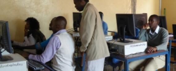 Saturday we participated in a teachers’ workshop sponsored by Arusha Node Marie (http://www.arushanodemarie.or.tz/). The workshop was for teachers to learn more about IT and the internet, and the coordinators invited Neal and me to give a two-hour demonstration of the Reneal IEO system. Neal spent Friday evening tinkering here in our room, and ended up with a improvised (but very clever) system to replicate a Reneal IEO computer lab for the workshop.